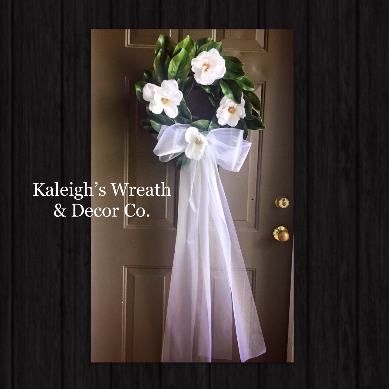 Wedding Wreath, for church doors, Bridal veil door hanger, Bridal Shower Decor, Wedding Decor, Front Door Wreaths, Magnolia Wreaths, Gifts, magnolia wedding decor